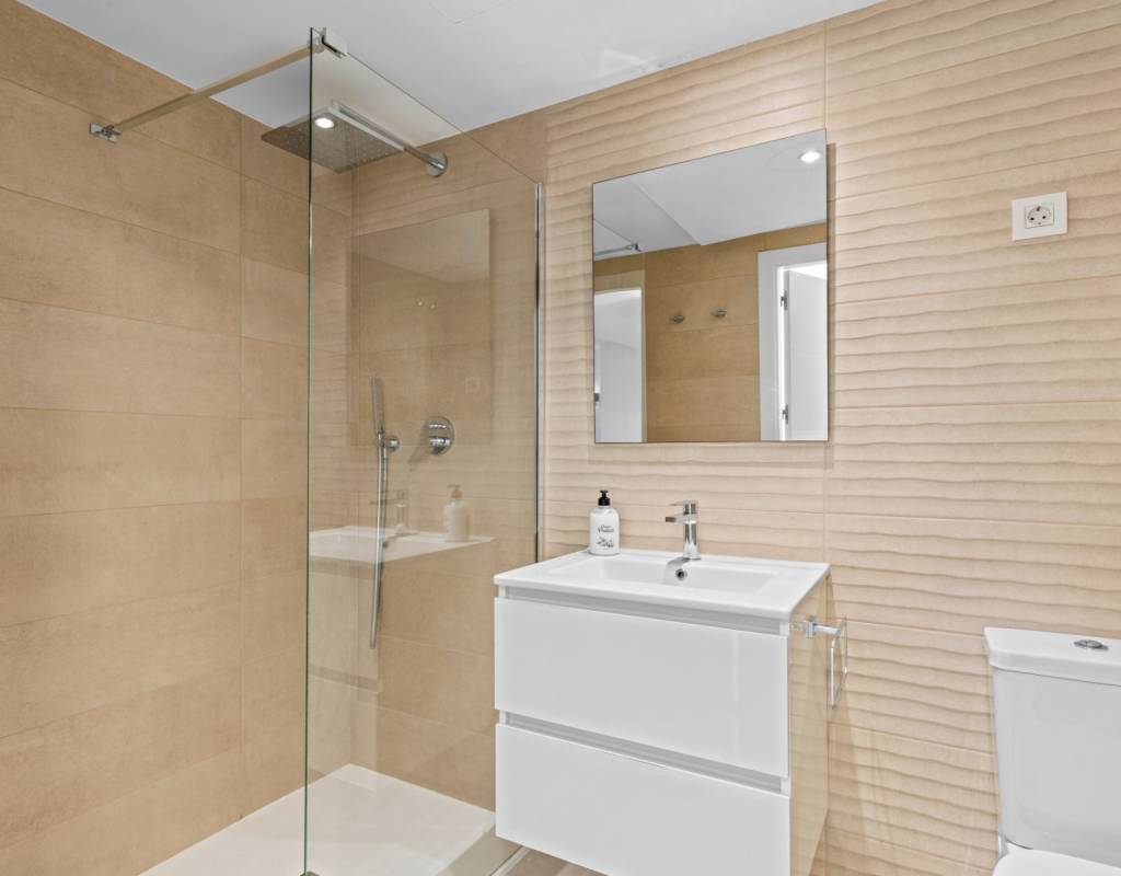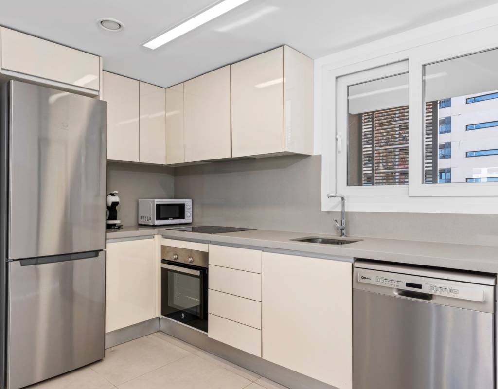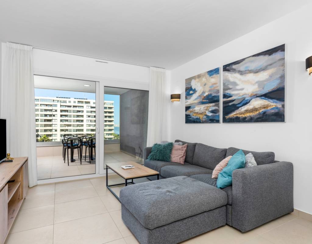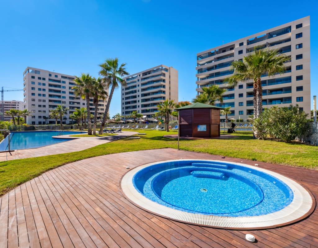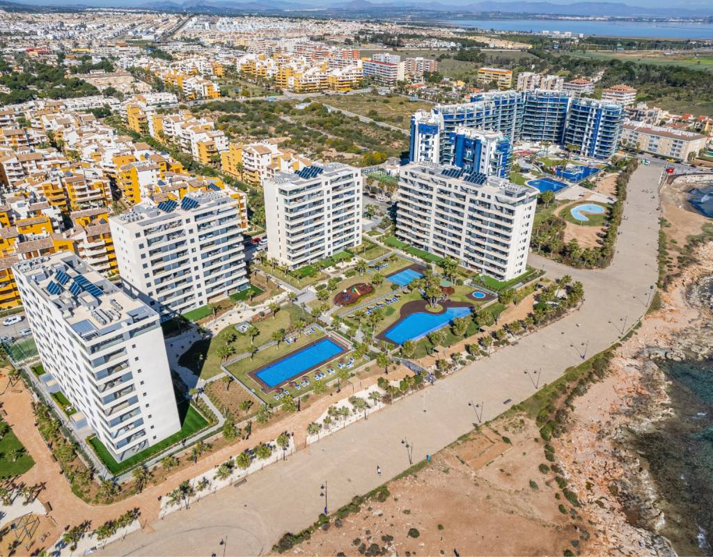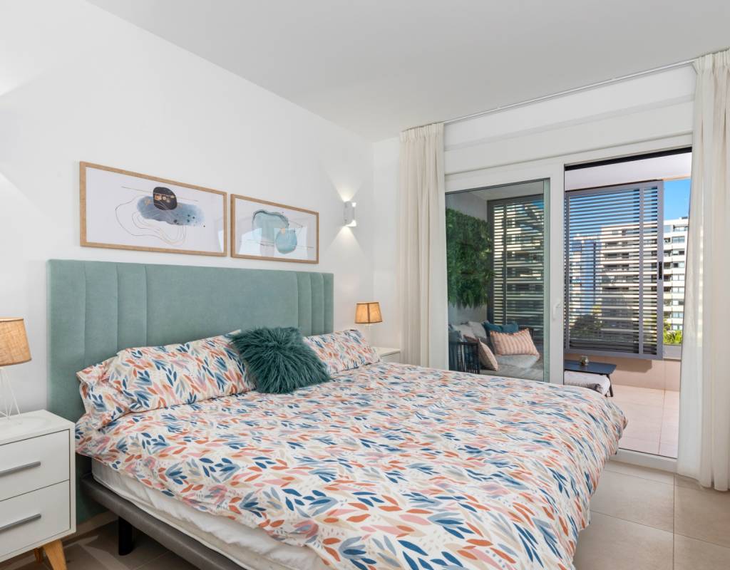 Bienvenido a este espacioso y bien diseñado apartamento de dos dormitorios y dos baños, ubicado en el codiciado Residential Panorama Park, construido en 2020. Ofreciendo una combinación perfecta de comodidad, estilo y conveniencia, esta casa es ideal para quienes buscan un refugio costero moderno. Al ingresar, lo recibe una sala de estar y comedor de concepto abierto, ideal tanto para relajarse como para entretenerse. Las grandes puertas corredizas conducen a un amplio balcón orientado al norte, que brinda abundante luz natural y ofrece impresionantes vistas al mar. La cocina está diseñada de manera eficiente con electrodomésticos modernos, amplio espacio de encimera y cómodo acceso al comedor, lo que hace que la preparación de comidas y la recepción sean sencillas. Además, se puede acceder a un segundo balcón orientado al sur desde la cocina, lo que garantiza un ambiente luminoso y aireado en todo el apartamento. El dormitorio principal sirve como refugio privado, con baño privado y acceso directo al gran balcón, perfecto para disfrutar del café de la mañana o de las puestas de sol al atardecer. En el extremo opuesto de la unidad se encuentra un segundo dormitorio de buen tamaño, que brinda privacidad y flexibilidad para invitados, familiares o una oficina en casa. Junto a él, hay otro baño completo que garantiza comodidad y conveniencia. Esta propiedad incluye estacionamiento subterráneo y un trastero privado, lo que agrega practicidad adicional a su experiencia de vida. El complejo Panorama Park cuenta con tres piscinas, una de las cuales está climatizada, que ofrecen diversión durante todo el año.