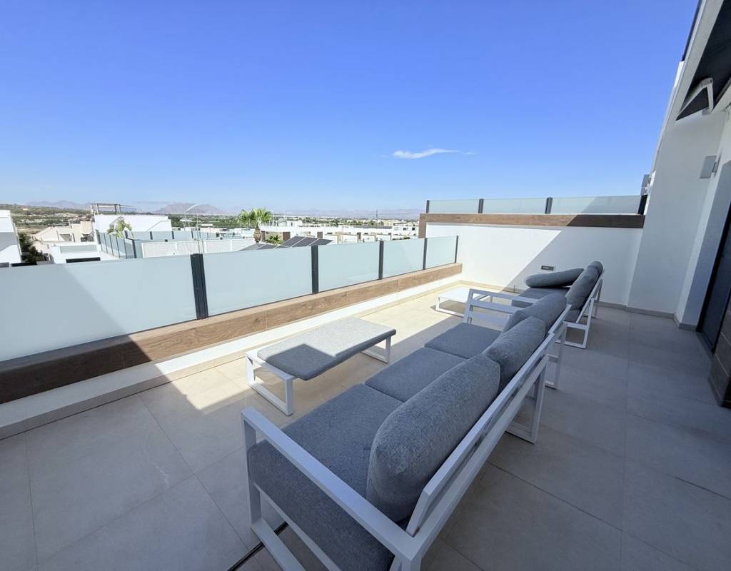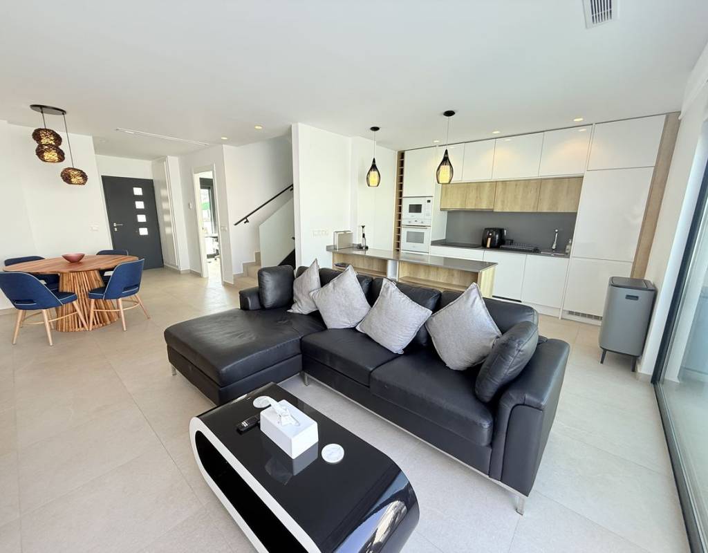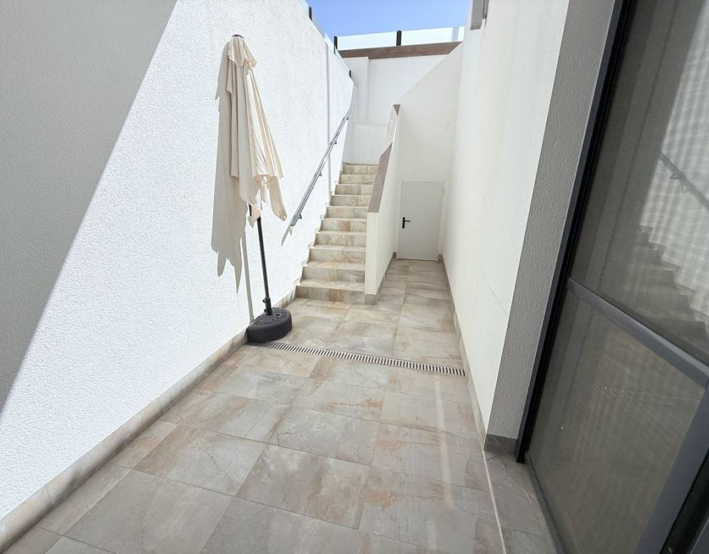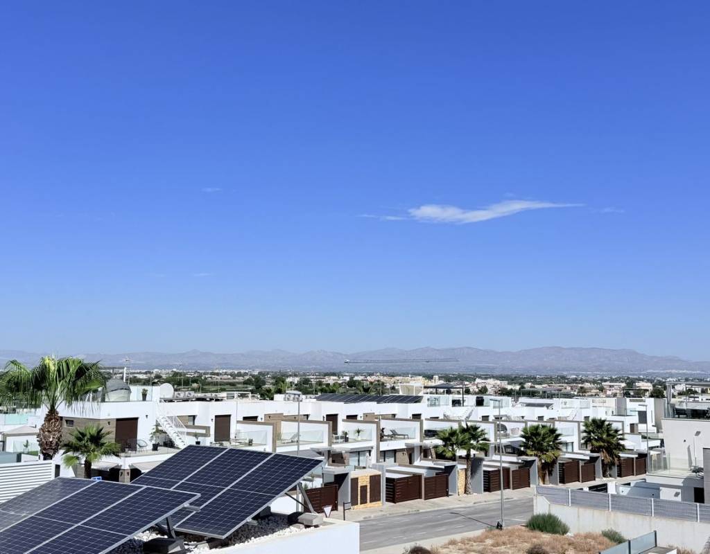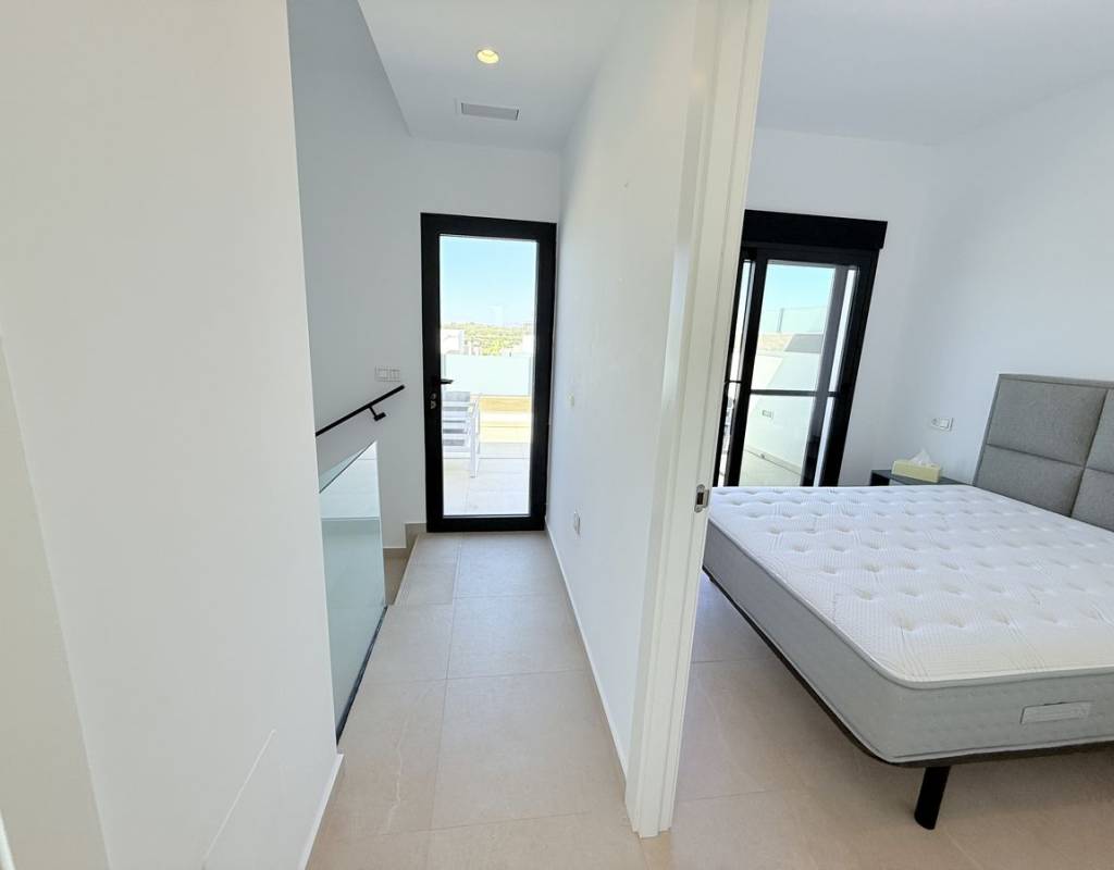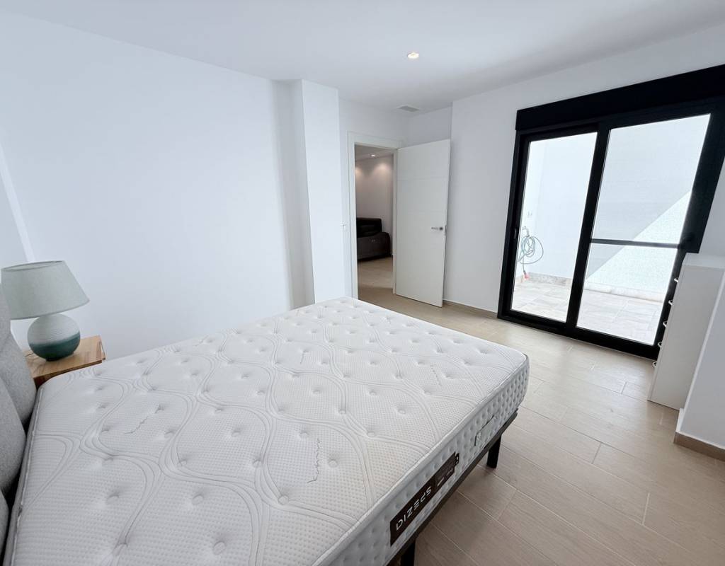 Descubra esta impresionante villa moderna, construida en 2021, ubicada en la codiciada zona de Benijófar, en la Costa Blanca Sur. Ubicada en una parcela de 85 m² con una superficie construida total de 183 m², esta propiedad con orientación este ha sido meticulosamente mantenida por su propietario original y ofrece una combinación perfecta de espacio, comodidad y estilo mediterráneo, ideal para quienes buscan una casa de obra nueva en España. La planta baja cuenta con un espacioso salón-comedor de planta abierta, una cocina contemporánea totalmente equipada y amplios ventanales que dan directamente a una piscina privada con cascada y solárium, el lugar perfecto para relajarse y disfrutar del sol español. Esta planta también incluye un dormitorio doble con armarios empotrados y un moderno baño con ducha a ras de suelo. Una escalera interior, así como una entrada independiente, conduce a la planta baja, con un amplio salón, un dormitorio doble adicional, un segundo baño, trastero y su propio patio soleado, ideal para invitados o una familia numerosa. En la planta superior encontrará dos dormitorios dobles más con armarios empotrados de suelo a techo. Uno de los dormitorios tiene acceso directo a un amplio balcón privado con impresionantes vistas a la montaña. La vivienda cuenta con aire acondicionado por conductos en toda la vivienda, aparcamiento privado con puerta con mando a distancia y se vende completamente amueblada, lista para entrar a vivir. Situada a poca distancia de todos los servicios locales, como tiendas, bares y restaurantes, esta moderna villa en Benijófar es la opción perfecta para vivienda permanente, propiedad vacacional o inversión de alquiler en la Costa Blanca Sur. Benijófar está bien comunicado con la autopista AP7, a 10 km de la playa y a 40 km de la capital y su aeropuerto. Geográficamente, se encuentra al sur de la provincia de Alicante. Su posición intermedia entre la costa y los pueblos del interior la convierte en un referente en la comarca de la Vega Baja. Benijófar cuenta con una población de 3.707 habitantes y, en continuo crecimiento, se ha convertido en el lugar ideal para vivir para muchos ciudadanos europeos.