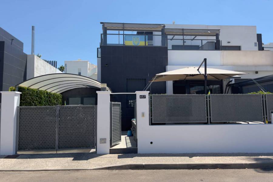 Stunning 3-Bedroom Quad Villa for Sale in Villamartin, Orihuela Costa Discover this beautiful 3-bedroom, 2-bathroom quad villa located in the sought-after Villamartin area of Orihuela Costa. Perfectly positioned within walking distance to La Fuente Commercial Centre, this home offers easy access to a variety of cafés, bars, restaurants, shops, and a supermarket. Spacious and Modern Living Space Spread over two floors, this stunning villa features a large lounge and dining area with glazed patio doors, leading to a spacious 65m² terrace and a 5.98m² garden—ideal for outdoor relaxation and entertainment. The open-plan modern kitchen comes equipped with a dedicated storage and laundry area. The ground floor includes two double bedrooms and a family bathroom complete with a walk-in shower. Private Solarium and Luxurious Features On the first floor, you'll find the master bedroom, which boasts large glazed patio doors opening up to a private 36.63m² solarium. This level also includes an ensuite bathroom with a walk-in shower. The solarium has an additional separate access door, making it an excellent space for privacy and relaxation. For added luxury, the current owners have installed a 5-seat jacuzzi, available for purchase at €2,500. Prime Location with Excellent Amenities This home is located in a secure neighborhood, offering both off-road parking and access to a communal swimming pool and garden. Nearby, Centro Comercial La Fuente provides a wide range of amenities, including cafés, bars, restaurants, supermarkets, and various services. Additionally, a smaller commercial area behind Mercadona features a gourmet restaurant, a French café/bakery, and home goods stores. For those who love shopping and entertainment, the Villamartin Plaza and La Zenia Boulevard—home to 150+ shops, restaurants, a casino, bowling alley, and gym—are just 7-10 minutes by car. The golden sandy beaches of Orihuela Costa, including La Zenia, Cabo Roig, Playa Flamenca, Punta Prima, and Campoamor, are all within a short drive and boast Blue Flag certification for cleanliness and safety. Convenient Transport Links & Schools The AP-7 motorway and N-322 are just 7 minutes away, providing easy access to Alicante Airport in under 40 minutes. For families, the renowned El Limonar International School, offering bilingual English and Spanish education, is also located in Villamartin. Why Choose This Villamartin Quad Villa? Prime location near commercial centers, restaurants, and servicesSpacious 3-bedroom, 2-bathroom layout with modern featuresPrivate solarium, large terrace, and optional jacuzziSecure community with off-road parking and communal poolClose to Blue Flag beaches, shopping malls, and entertainmentExcellent transport links and nearby international school This is a fantastic opportunity to own a permanent residence, holiday home, or investment property in one of the most desirable locations on the Costa Blanca South. Contact us today to schedule a viewing!