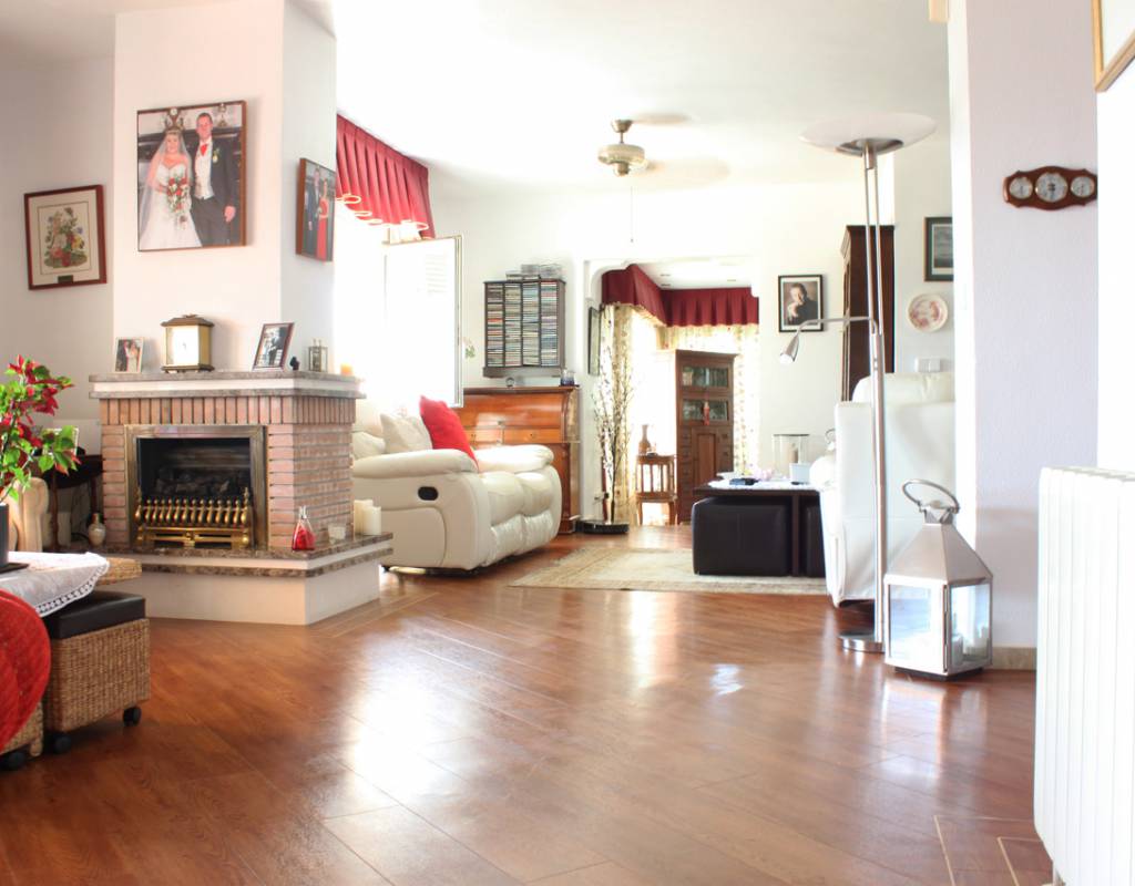 Superb first line Detached Villa on elevated site with breath taking views over Las Ramblas golf course This is an amazing large family home and it´s built on three levels, approximate build size 300 sqm on a large plot. On the ground floor we find the annex : large open plan area currently being used as an entertainment with a bar , lounge, family bathroom, kitchen area but could easily be converted into 2 bedrooms , this opens onto the amazing pool area with terrace mature gardens and great views . On the 1st Floor there are 3 double bedrooms all with built-in storage, one with en-suite and a dressing room and a separate family bathroom , very tastefully decorated. On the 2nd floor We have the main entrance, a large open plan living dinning area with gas fire and and access to a large terrace with more stunning views, a modern sparkling kitchen with tepanyaki bar and a staircase that leads to a separate bedroom and mezzanine currently used as an office (this is the the very top part of the property) The property benefits from air conditioning and gas central heating and it comes part furnished, With this property comes a private pool (8x4) a garage, a store room and many more extras. To fully appreciate this property must be viewed in person !