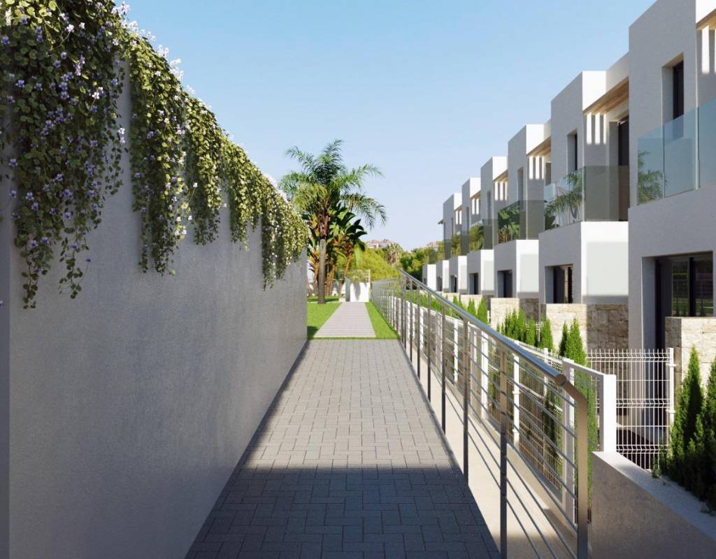 NEW BUILD SEMI-DETACHED VILLAS IN FINESTRAT New Build residential of townhouses and semi-detached villas in Sierra Cortina, Finestrat. All properties will have 3 spacious bedrooms and 3 elegant bathrooms to provide comfort and privacy to its inhabitants. The spacious living-dining room, with its integrated modern kitchen, will be the heart of the house, where family and friends will be able to gather and enjoy unforgettable moments. In addition, the house will be equipped with pre-installation for ducted air conditioning. Cutting-edge technology will be a prominent feature of this house, as it will be fully automated thanks to an advanced home automation system. From lighting control to security management, everything will be at your fingertips. Private garden will be an oasis of tranquillity where you can relax and enjoy nature. In addition, the property will have an impressive communal swimming pool, ideal for cooling off and socialising with neighbours, and a children's playground. New Build properties will offer a comfortable and functional space for the whole family. It will also have a private parking space for added convenience. In short, this brand new properties in Sierra Cortina will be a perfect residence for those who are looking for a comfortable and luxurious lifestyle. This magnificent New Built properties will be located in the exclusive Sierra Cortina urbanisation, just 5 minutes from Benidorm.
