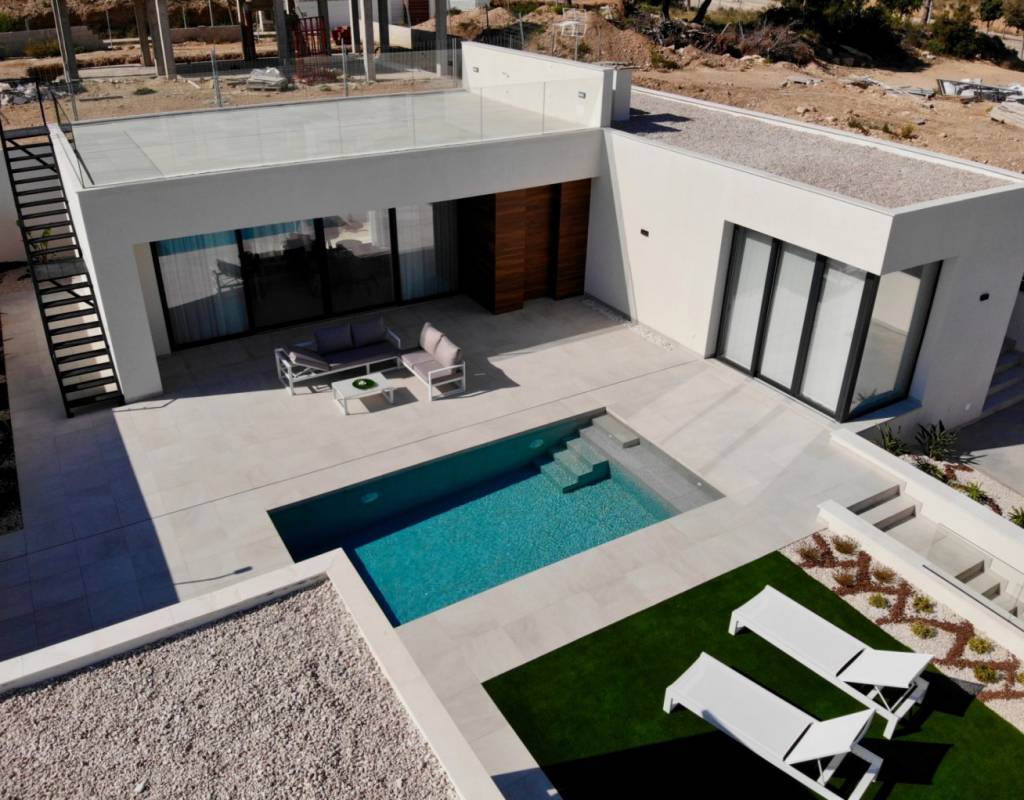 BRAND NEW VILLAS IN POLOP WITH SEA VIEWS !!! Project of Four houses on plots from 434 m2 to 467 m2. Homes on one floor for greater comfort. In an urbanization on the outskirts of the typical town of Polop, 8 km from Benidorm and its beaches. You can choose a series of extras for the completion of the homes: Finished garden Pool 6x3 m Solarium Pool bar (optional) Air conditioning · Pre-installation of charging point for electric cars (optional) Optional basement (80 m2)