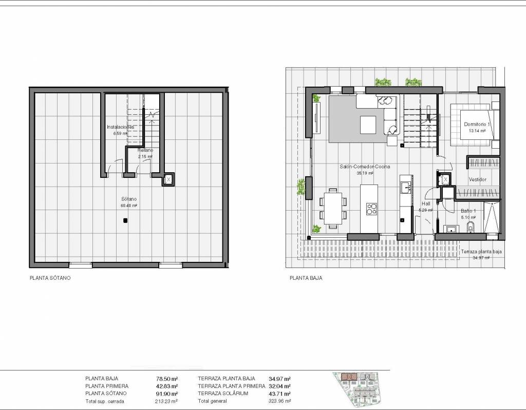 NEW BUILD SEMI-DETACHED VILLAS IN POLOP New Build modern townhouses and semi-detached villas with several terraces and solarium, totally fenced, with parking area for vehicles and private swimming pool in Polop. Modern properties with 3 spacious bedrooms with built-in wardrobes (the main one on the ground floor, with bathroom and dressing room en suite), 2 spacious bathrooms, large living-dining room with open kitchen, spacious terraces, large semi-basement with windows. Kitchen equipped with base units and silestone worktops, with ceramic hob, oven, extractor hood, fridge, washing machine, dishwasher, and aerothermal heater. First qualities: interior carpentry in wood and white lacquered laminates, exterior carpentry in anthracite grey pvc with double glazing and thermal bridge break, and automatic blinds with aluminium slats, ceramic floors of 1st quality non-slip, smooth walls, security door with 5 anchor points, large built-in wardrobes. The city of Polop offers an amazing range of options for lovers of the great outdoors surrounded by nature and unparalleled peace. The municipality enjoys a Mediterranean climate with cooler temperatures and cleaner air, located less than 10 kilometres from Benidorm, Altea and their beaches. It stretches from the rivers Guadalest and Algar to the town of Villajoyosa, including the beaches of Albir and Benidorm; inland it borders Callosa and Guadalest.