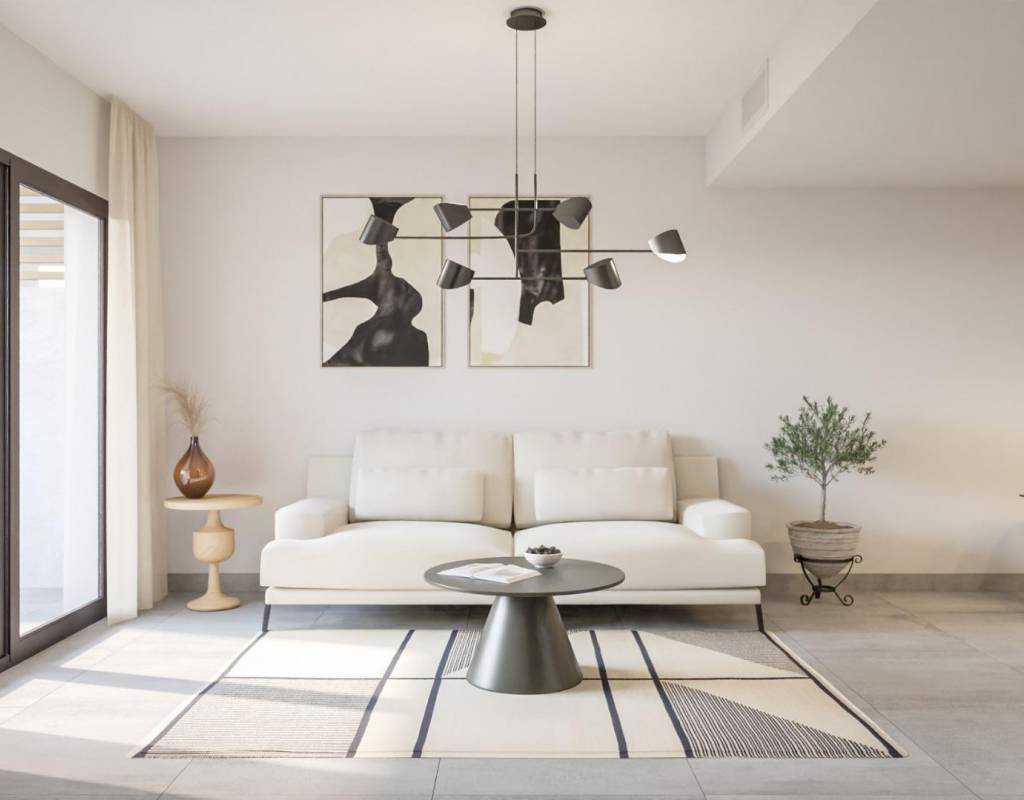 NEW BUILD RESIDENCIAL COMPLEX IN ORIHUELA COSTA New Build modern style residential complex of 12 properties with 2 bedrooms and 2 bathrooms, distributed on three different levels with terraces. Most of the properties include private parking place and storage room on the garage level and, a couple of properties would enjoy private garden. The penthouses will have spacious solariums with amazing views to the area. Bright spaces with Mediterranean touches, where elegance meets warmth. With finishes in neutral tones and a predominance of white, these apartments offer a serene and welcoming atmosphere. The open-concept kitchen effortlessly integrates with the living area, creating a modern and functional environment. Enjoy comfort and authenticity in every corner, where natural textures add a distinctive touch. Welcome to Mediterranean living, where light and simplicity come together to create a warm and inviting home. Residencial is part of a community already formed with private accesses with a nice communal parking area, gardens and a great swimming pool. Wellness and enjoyment for the owners who will also have services for their families such as international schools, playgrounds or the most recognised medical centers, enjoying their life in our 320 sunny days per year. Residencial complex located in one of the most privileged areas in Villamartin-PAU8, in a closed and private urbanisation totally finished. Bright spaces with Mediterranean touches, where elegance meets warmth. With finishes in neutral tones and a predominance of white, these apartments offer a serene and welcoming atmosphere. The open-concept kitchen effortlessly integrates with the living area, creating a modern and functional environment. Enjoy comfort and authenticity in every corner, where natural textures add a distinctive touch. Welcome to Mediterranean living, where light and simplicity come together to create a warm and inviting home. The homes are equipped with electrical and telecommunications outlets required by the Low Voltage Electrotechnical Regulations. Intercom for communication between the home and the main entrance. Home automation system: blind control, alarm, lighting control (living room and kitchen). Pre-installation of central hot and cold air conditioning. Fully fitted alarm system with one sensor by room, touch pannel and siren. Main entrance armoured security door fitted with exterior in brown and white interior panel. White lacquered interior doors with stainless steel square handlers. Built in wardrobes with sliding white doors and soft closing system. The penthouses include pre-installation of a kitchen: water supply, faucet, drainage, and socket. This complex combines the tranquility of living in a quiet environment, having the comfort of all the services at your fingertips. Residencial is located in the pleasant surroundings of the Villamartín Golf Course, an urbanization located on the Costa Blanca, just 45 minutes from the Alicante airport and 1 hour Murcia - Corvera airport, with access to a wide variety of services such as shopping centers, supermarkets and just 10 minutes from the spectacular sandy beaches of the area.