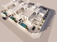 NEW BUILD SEMI-DETACHED VILLAS IN DOLORES New Build Residential of 6 semi-detached villas in Dolores. Beautiful semi-detached villas build over 2 floors with 3 bedrooms, 3 bathrooms, open plan kitchen with the lounge area, fitted wardrobes with dividers and drawer units, private garden with the pool and off road parking space, private solarium. The kitchen will be fitted with base, island over-bench cupboards, drawer units with telescopic runners with ball bearings, semi-automatic hinges and wall units with shelves. The worktop will be of compact quartz, colour to choose between black, white and grey. The sink will be stainless steel and mixer taps. The laundry room includes a bench with sink and base units. The toilet will be porcelain, wall-hung model. The washbasin will be made of porcelain (for countertop) in white, which will be installed on bathroom furniture and mirror. The taps will be Tres, Ramon Soler, or similar. The shower tray will be made of fibre. The toilet will be of porcelain suspended. The washbasin will be made of porcelain (for countertop) in white, which will be installed on bathroom furniture and mirror. The taps will be Tres, Ramon Soler or similar brand mixer taps. Urbanisation finished in porcelain stoneware and decorative areas with artificial grass and outdoor lighting. Plot fencing according to design, in vibro-compressed concrete block wall with continuous single-layer W1 mortar coating and metal fence according to design. Pedestrian entrance door and car access door (non-motorised) according to design similar to show house. Swimming pool with reinforced concrete pool tank gunned and finished in glazed stoneware. With compact model purifying station. Including staircase inside the pool for access and side bench with air jet impulsion by means of electric pump operated by touch button, shower and waterfall. Dolores is a town located in the comarca of Vega Baja del Segura in southern Alicante province, Spain. The town is in the heart of the Segura huerta about 10 km from the nearest beaches in La Marina and Guardamar. Complex located 30 minutes from Alicante airport and 1 hour Murcia - Corvera airport.