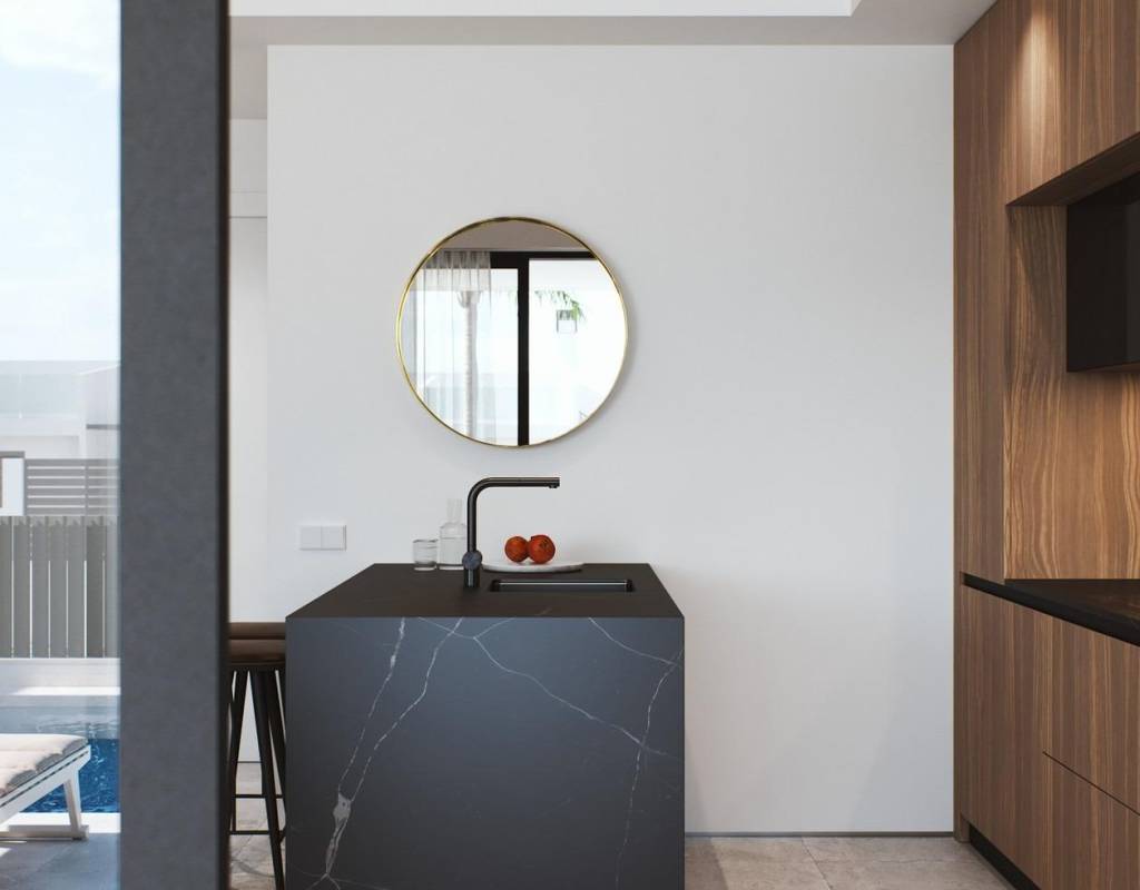 NEW BUILD VILLAS IN PRIVATE GATED RESORT IN PROVINCE OF MURCIA New Build villas in private gated resort in the Murcia region, surrounded by excellent golf courses and just 10 minutes from the sandy beaches of the Mar Menor Sea. Villas build over of 3 floors and has 3 bedrooms, 3 bathrooms, open plan kitchen and living-dining room, fitted wardrobes, basement, private garden with the pool and parking space. Located in a private gated resort, with a main access entrance and 24 hours security. The resort is designed around an impressive 126.000 m2 green area. It comprises walking and cycling paths, sport facilities, paddle and tennis courts, a mini-golf course, gardens, dog parks, leisure areas, clubhouse…. Also in the central area is the jewel of the resort, a crystal-clear artificial lake of almost 17.000m2 of water surface, surrounded by white sandy beaches and palm trees, bringing a piece of the Caribbean to the Murcia Region. There are 2 islands in the lake, one of them has its own bar, there are also “beach Chiringuitos” spread around the lake. The resort is strategically located less than 4 km from the beach and the town of Los Alcázares, where you can practice various water sports, surrounded by several golf courses and the city of Cartagena less than 15 minutes by car and 22 km from Murcia airport, therefore having a wide cultural, gastronomic and sports offer within reach.
