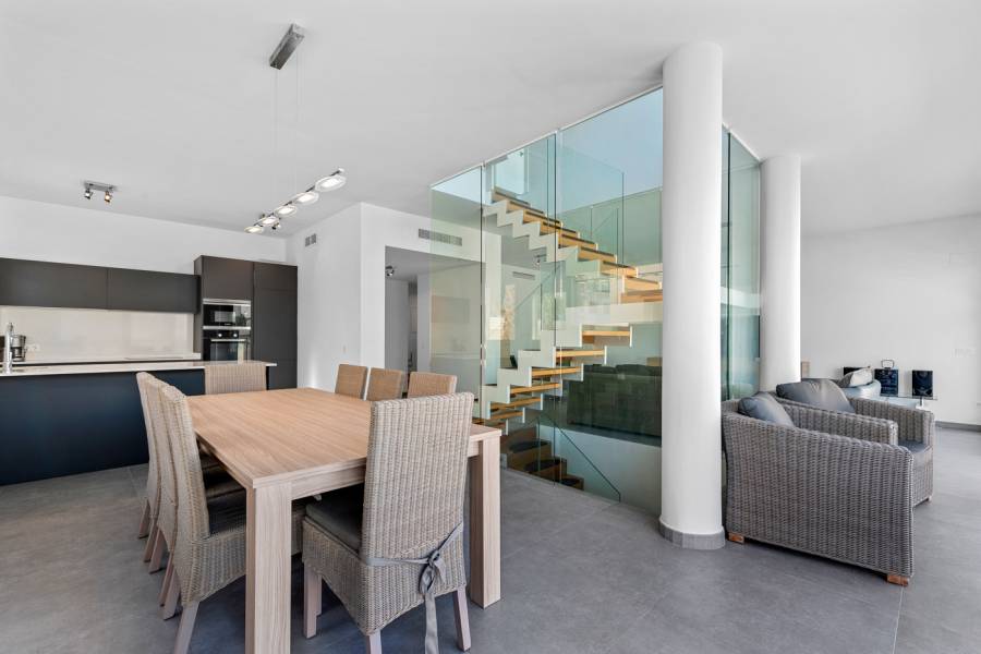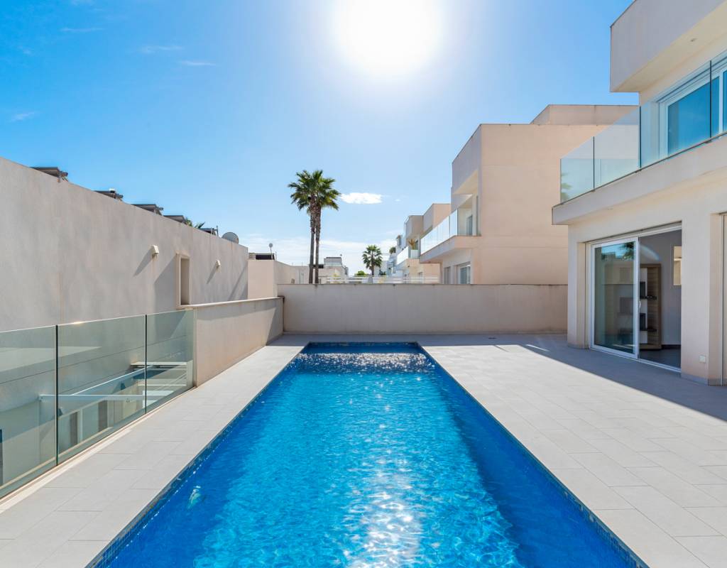 Exclusive Villa in Guardamar Hills for sale – Prime Location Near the Beach Located in the prestigious Guardamar Hills neighborhood, this luxury villa offers an exceptional blend of modern design, space, and an unbeatable location. Built in 2016, this stunning home is just 900 meters from the golden beaches of Guardamar de Segura and within walking distance of the lively town center. Spacious Layout Across Three Levels Ground Floor: A striking open staircase divides the elegant living area from the stylish kitchen and dining space. The open-plan design, high-end finishes, and natural light create an inviting atmosphere.First Floor: Two spacious en-suite bedrooms, both offering sea views and plenty of natural light.Basement Apartment: A fully equipped independent living space, featuring a brand-new kitchen, a spacious lounge, two additional en-suite bedrooms, and a separate guest toilet. Large sliding doors open directly to the terraces and private pool, filling the basement with natural light. Outdoor Living Panoramic Views This villa is designed for Mediterranean outdoor living, featuring: A large private swimming pool set within a beautifully landscaped garden.Multiple terraces to soak up the sun or entertain guests.A stunning rooftop solarium with breathtaking panoramic views of the sea and the lush hills of Guardamar. Prime Location – Walking Distance to Beach Amenities Situated in Guardamar de Segura, this home enjoys the perfect balance of tranquility and convenience. 900m to the beach – Enjoy the pristine coastline within minutes.500m to amenities – Cafés, restaurants, and shops are just a short walk away.15 minutes to golf courses – A haven for golf lovers.30-minute drive to Alicante Airport – Easy access for international travel. Key Features: ✅ Year Built: 2016 ✅ 4 Bedrooms | 4 Bathrooms | 2 Guest Toilets ✅ Total Build: 448m² ✅ Private Pool Garden ✅ Spacious Terraces Solarium ✅ Sea Views from Multiple Levels ✅ Fully Equipped Basement Apartment ✅ Private Parking ✅ Air Conditioning High-End Finishes This luxurious villa is perfect for those seeking a stylish, spacious, and private home in a sought-after coastal location. With stunning sea views, a private pool, and a short walk to the beach and town center, this is a rare opportunity in Guardamar de Segura. Contact us today to arrange a viewing!